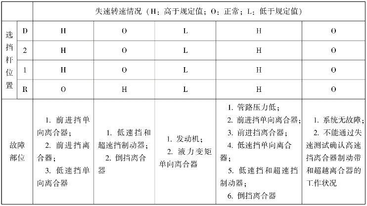 ①若车辆不能达到80km/h以上的速度,说明液力变矩器壳体内的单向离合器卡住。