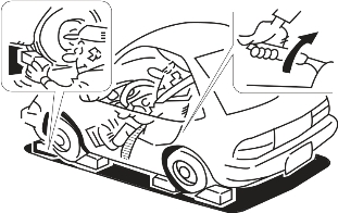 (3)设置驻车制动并挡住车轮,如图3-12所示。