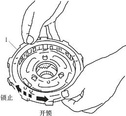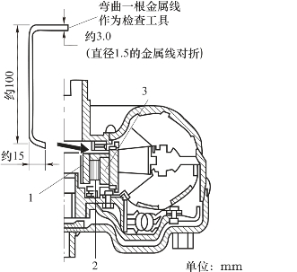 (1)将检查工具插入装在单向离合器外座圈的轴承支座凹槽中。