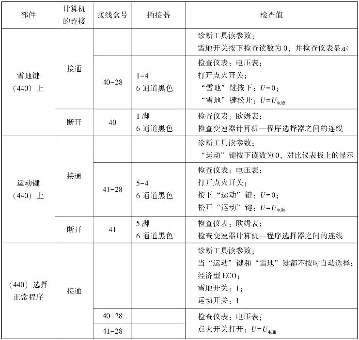 如果机油温度超过118℃,“运动”和“雪地”指示灯闪烁,检查交换器内流量电磁阀电源正极是否短路。用诊断工具读取机油温度。