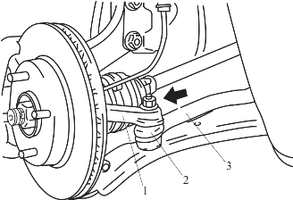 注意:应临时拧紧螺母,以防止损坏螺纹及球节拆卸器突然脱落。