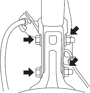 (4)拆卸承扭臂固定螺栓,如图4-4所示,将承扭臂吊起到不影响工作的地方,注意拆卸制动钳后不得踩下制动踏板。