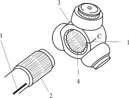 1—匹配标记;2—驱动轴;3—十字轴组件;4—花键