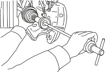 (9)从轮毂和轴承总成上拆卸驱动轴。