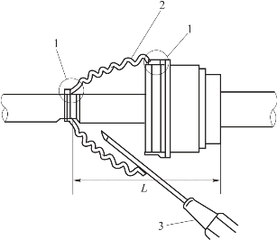 (5)如图4-16所示,将卡箍牢牢安装到槽内,将平头螺丝刀从防尘罩大直径侧插入防尘罩内部放出里面的空气,防止防尘罩变形,并调整防尘罩安装长度(L)到规定值。