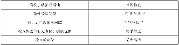 (5)检查前、后轮毂轴承间隙,检查时车轮应悬空。