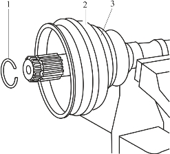(3)如图4-53所示,拆下卡环、传动轴防护罩、环。