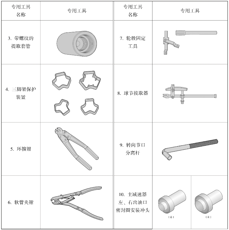 更换传动轴防护罩所用专用工具如表4-5所示。