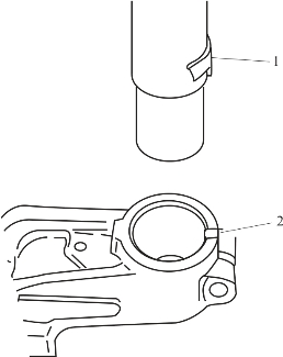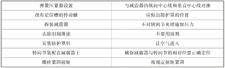 (3)将转向节装配在减震器上,如图4-61所示,通过凸块插入凹槽,确保减震器与转向节的相对位置正确定位。