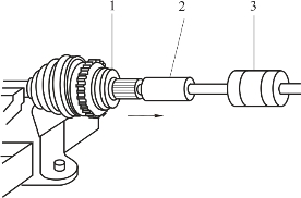 1—传动轴螺母;2—球节;3—轮毂固定工具
