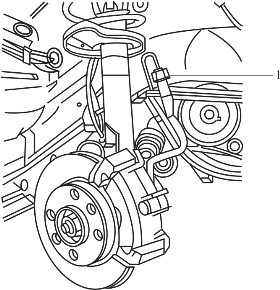 (3)如图4-63所示,使用球节拔取器拔出球节,拆下卡板螺栓、车轮传感器。