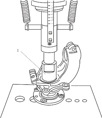 (2)如图4-76所示,安装轴承装配座,使用压力机,安装前轮毂轴承完全到位。