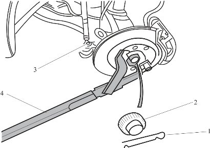 1—开口销;2—锁帽;3—球节螺母;4—轮毂固定工具