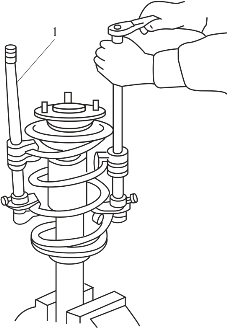 (6)在确保螺旋弹簧位置可靠的情况下,逐渐松开弹簧压缩器,然后拆下弹簧压缩器。