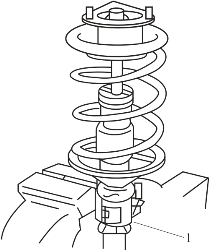 (7)拆卸减震器安装隔垫的固定螺栓,如图5-14所示,然后从汽车上拆卸减震器总成。