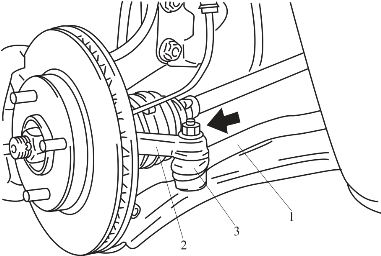 (2)拆卸横拉杆球节固定螺母与螺栓,然后从转向节上拆卸横拉杆。