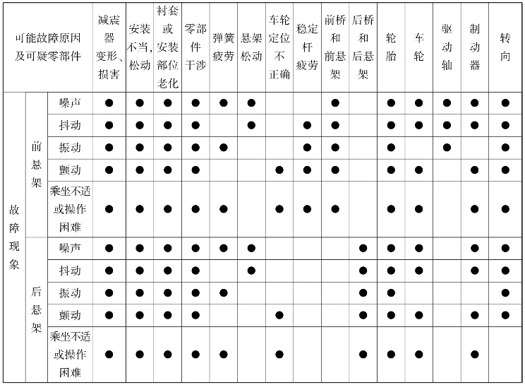 悬架噪声、振动和不平顺性故障分析如表5-2所示。