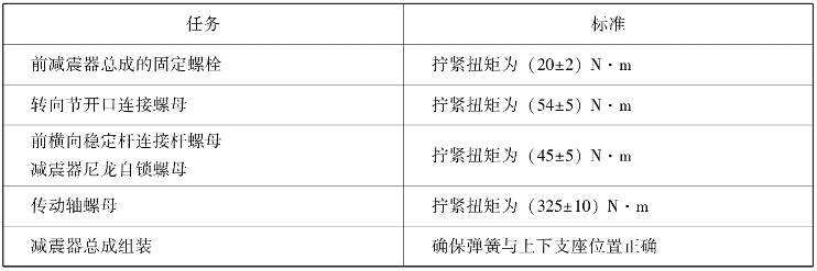 ①前减震器总成的固定螺栓拧紧扭矩为(20±2)N·m。