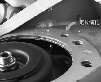 ①减震器上端定位销装入定位销孔,如图5-69所示。