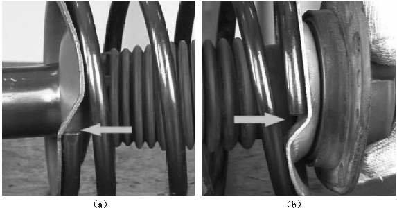 (a)弹簧与上支座位置;(b)弹簧与下支座位置