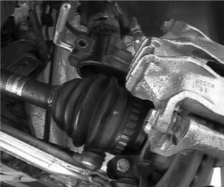 ⑤分离转向节与减震器,注意防止损伤波纹防护罩,如图5-58所示。