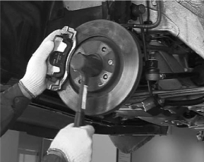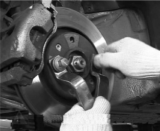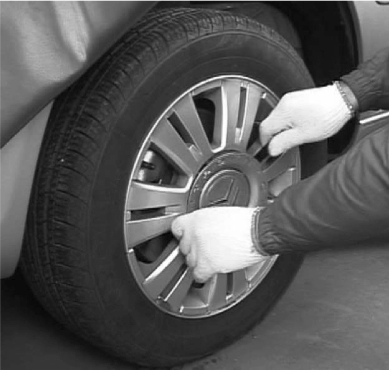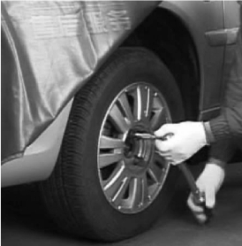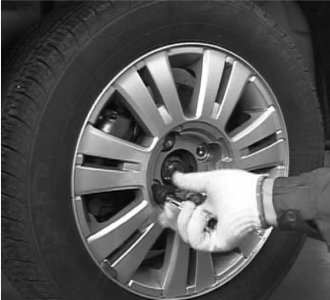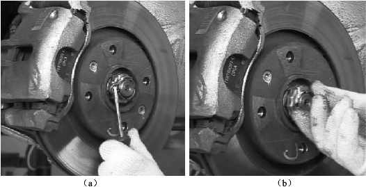 ①拧下车轮螺栓,卸下前车轮,如图5-47所示。