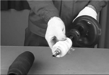 ④取下减震器杆保护套和弹性挡块,如图5-65所示。