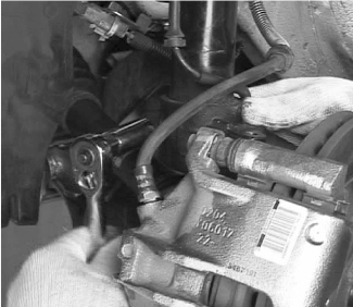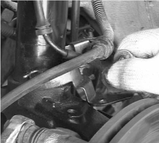 ②松开ABS传感器线束、制动软管,拆下卡板,如图5-55所示。