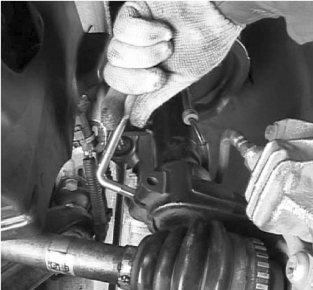 ①拧下稳定杆连接杆螺母,如图5-54所示,然后,将稳定杆连接杆置于一边。
