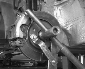 ④将转向节口分离杆插入转向节开口,旋转1/4圈,撑开转向节开口,如图5-57所示。