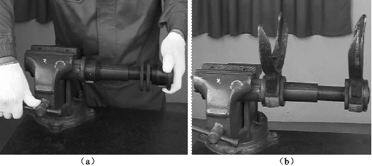 (a)装弹簧压缩器;(b)装弹簧保持架