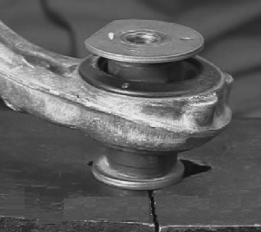 注意:悬架纵臂通过一个定心环固定在后转向节上。