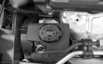 使用规定动力转向油。转向助力泵储油罐如图6-2所示。