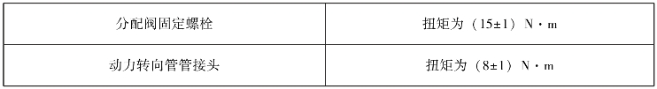 (6)安装供油管,拧紧分配阀上的动力转向管的管接头使扭矩达(8±1)N·m,安装塑料减振装置,更换和调整转向齿条预加载柱塞,重新装配转向齿条。