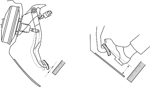 发动机停止后,踩下制动踏板几次,以便解除制动助力器。然后,使用手指轻轻按压制动踏板并且使用一把直尺测量制动踏板自由行程。对于配备了液压制动助力器的车辆,至少要踩下制动踏板40次。