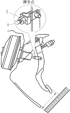 ④调整好制动踏板高度之后,检查制动踏板自由行程。