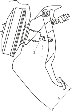 1—锁止螺母;2—踏板推杆;A—制动踏板高度