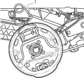 1—卡尺;2—摩擦片;3—铆钉;4—观察孔;5—后减震器;6—制动底板;7—后桥体;8—驻车制动器