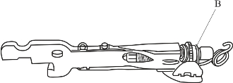 后制动器定位弹簧及复位弹簧的检查:如图7-17所示,若后制动器定位弹簧、上复位弹簧、下复位弹簧和楔形调整板拉簧的自由长度增长率达5%,则应更换新弹簧。