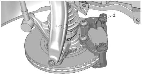 (1)松开车轮螺栓,举升并支撑车辆前部。