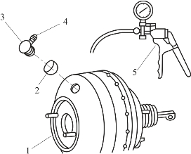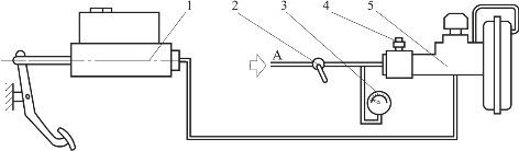 1—制动主缸;2—开关;3—压力表;4—放气螺钉;5—真空增压器