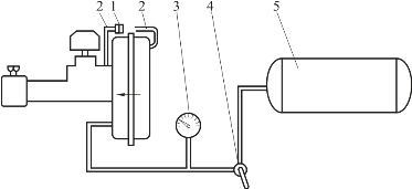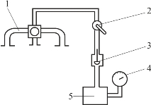 1—发动机进气歧管;2—开关;3—单向阀;4—真空表;5—密封容器