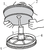 ⑥在第一膜片内孔周边涂敷聚硅酮润滑剂,将第一膜片放入第一托板,并将第一膜片向上翘折,将第一膜片及托板安装到柱塞上。将向上翘着的第一膜片的外边缘向下翻,并套在隔板法兰上,如图7-40所示。