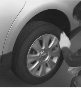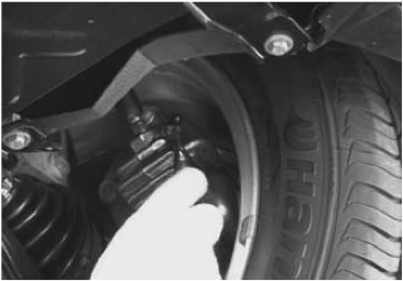 (3)检查制动管道和软管,确保车辆运动时或者转向盘完全转动到任何一侧时,不会因为振动而与车轮或者车身接触。手动转动轮胎直到转向盘被完全转向一侧,如图7-47所示。