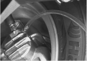 (2)分别对各制动器排气:将一塑胶管连接到排气螺钉上,另一头插入到一个干净的容器中,如图7-50所示。