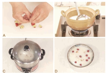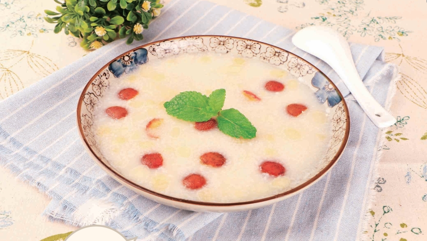 醪糟150克,牛奶80毫升,杏仁、鲜山楂各30克