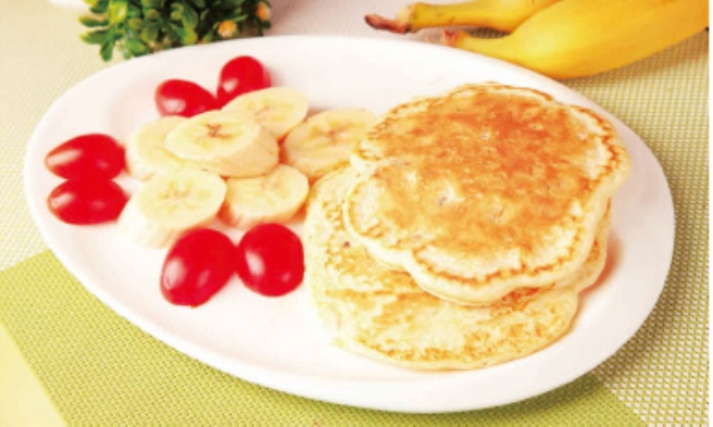香蕉255克,低筋面粉280克,鸡蛋1个,圣女果30克,泡打粉35克,牛奶100毫升
