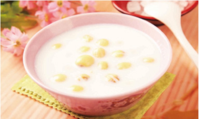 雪白浓醇的牛奶化为河流,娇小可人的莲子在其中载浮载沉,悠悠地仿佛在诉说甜蜜温馨的美梦。