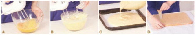 3.烤盘上铺上烘焙纸,将搅拌好的面糊倒入烤盘,放入烤箱内,烤20分钟至面糊松软,取出烤盘,放凉待用。