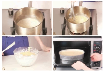 4.把拌好的材料注入模具中,至八九分满,制成蛋糕生坯,放入烤箱中,烤40分钟,取出,放凉后脱模,摆好盘即可。